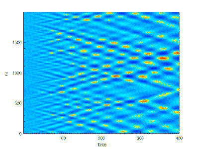 AIC の不安定波動が磁場の方向にそって進んで行く様子です。