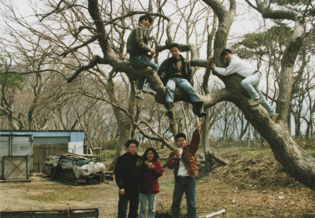 木に登っている真ん中のとぼけたやつ(カジワラ)